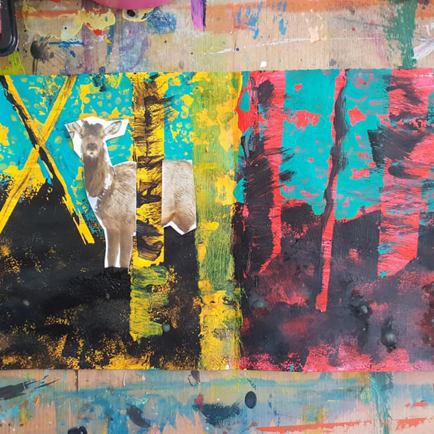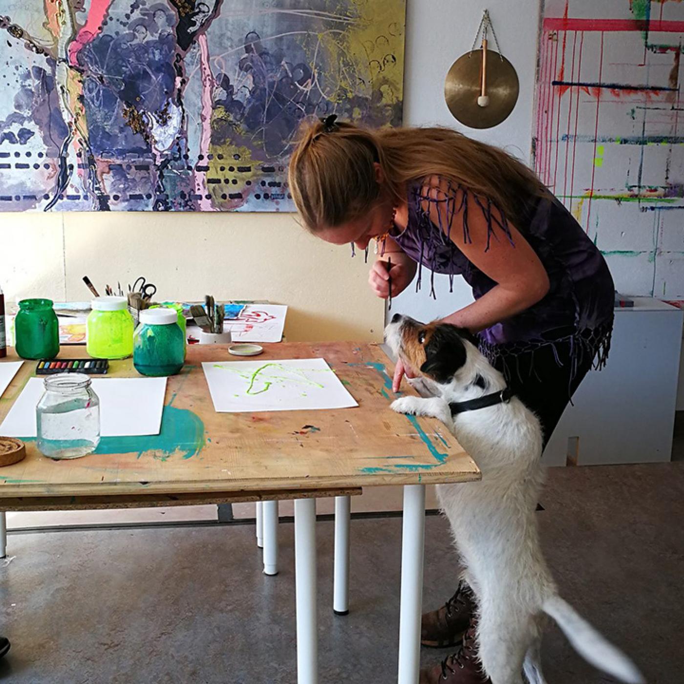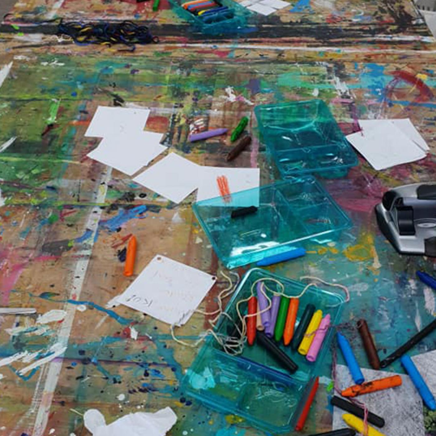 Die Kinder arbeiten in einem richtigen Atelier und lernen neue Techniken kennen. Hier wird gezeichnet, gemalt, gedruckt und experimentiert.
