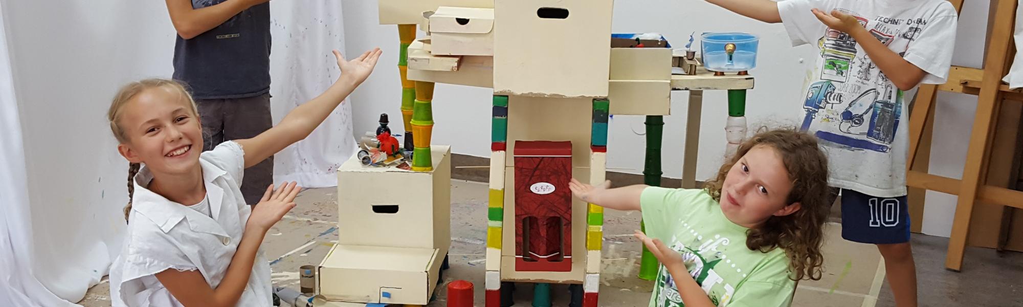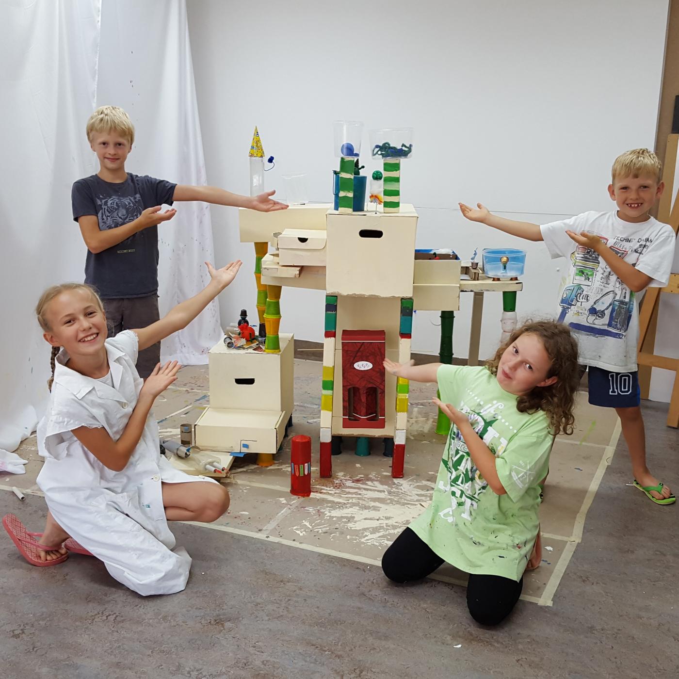 Hier können deine Kinder ihre Kreativität ausleben! Es wird gemalt, gezeichnet, gedruckt, gebastelt und es werden ungewöhnliche Techniken ausprobiert. Die Kinder malen Menschen, Tiere, Fabelwesen und Fantasiewelten und basteln aus Restmüll coole Dinge. Außer Kleidung, die schmutzig werden darf, ist nichts mitzubringen.